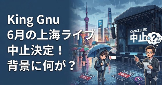 人気ロックバンド「King Gnu」が2026年3月14日、公式サイトで衝撃の発表を行いました。 6月13日・14日に予定していた上海公演を「やむを得ない諸事情により」中止するというのです。 具体的な理由は明かされていませんが、最近の中国では日本のエンタメイ... -