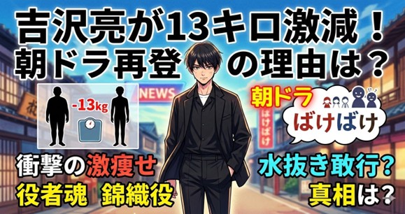 NHK連続テレビ小説「ばけばけ」で錦織友一役を演じる吉沢亮さんが、4週ぶりに再登場しました。 ラスト30秒に映し出されたその姿に、視聴者は言葉を失いました。 頬がこけ、別人のように痩せた吉沢亮さんの姿が画面に映し出されたのです。 なんと約1カ月で1... -