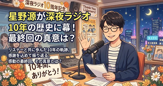 2026年3月31日深夜、ニッポン放送「星野源のオールナイトニッポン」が10年の歴史に幕を下ろしました。 2016年の放送開始からちょうど10年、多くのリスナーに愛され続けた深夜の人気番組。 最終回にはなんと1万通ものメールが届いたといいます。 なぜ今、終... -